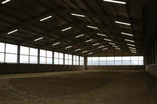 Für die täglichen Trainingseinheiten bietet die lichtdurchflutete Reithalle (20x60m) beste Bedingungen.